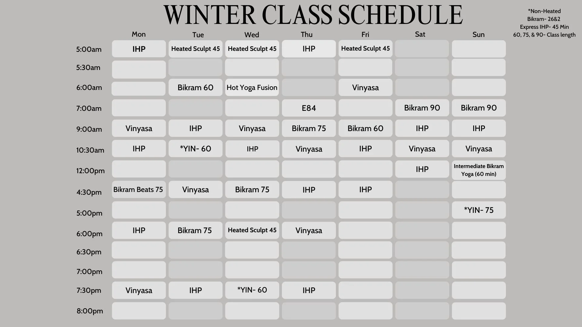 HYP offers 3 different types of hot classes along with 1 non-heated class. All classes are meant to compliment each other, building strength & discipline. Whether you have been practicing for years or starting for the first time, any class offered at HYP is designed for you!
